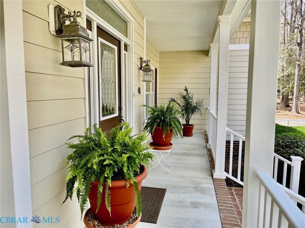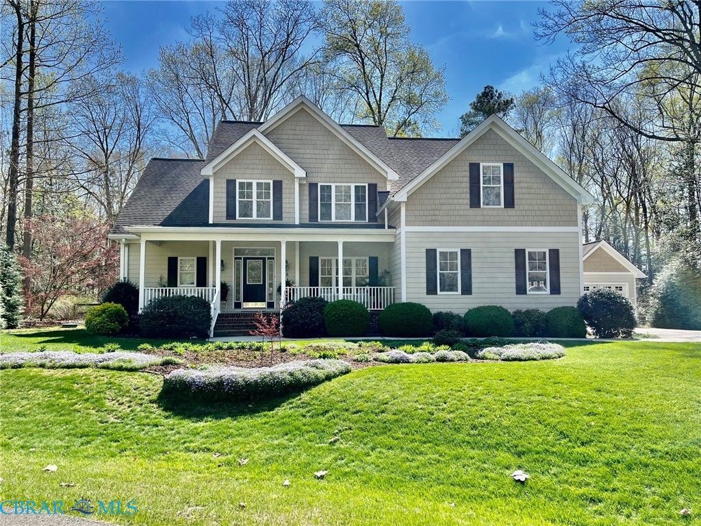 Southern Hospitality. Immaculate 1.65-acre cul-de -sac home backing to the pond in The Coves at Wilton Creek has 4 bedrooms, 3.5 baths, office space and 3 car garage. Hardwood flooring, soaring ceilings and a paver driveway set this home apart from the rest. The 2 story Great Room with cathedral ceiling has a cozy gas fireplace, open to the kitchen with access to the screened in back porch with copper pull-down shades. The eat-in Kitchen features gas cooking, Corian countertops, double ovens & pantry. Formal Dining Room with crown molding & chair rail. The 1st Floor Primary bedroom has a tray ceiling, walk-in closet, porch access. There is updated en-suite bath with new walk-in shower and walk-in jetted tub. 1st Floor laundry room with sink. Convenient 1st floor office. Upstairs are 3 other good size bedrooms with walk-in closets. 2 car attached garage plus 1 car detached garage. Wooded and creek views. Delightful country front porch. Community features dock, clubhouse, pool and pickleball. The community has access to the tranquil Piankatank River! Close to Gloucester, White Stone & Kilmarnock. Easy commute to Williamsburg and Richmond.